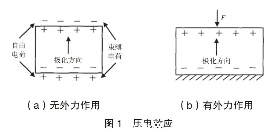 压电晶体式传感器的工作原理是晶体的压电效应,当晶体受到某固定方向外力的作用时,内部就会产生电极化现象 , 同时在某两个表面上产生符号相反的电荷;当外力撤去后,晶体又恢复到不带电的状态;当外力作用方向改变时,电荷的极性也随之改变;晶体受力所产生的电荷量与外力的大小成正比。这种现象称为压电效应,如图1所示。
